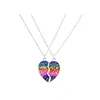 Shiny Jewellery 2 Piece Necklace Sets Heart-shaped Stitching Pendant Chain stainless steel